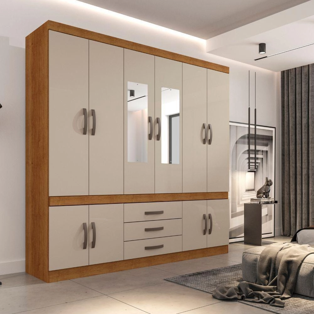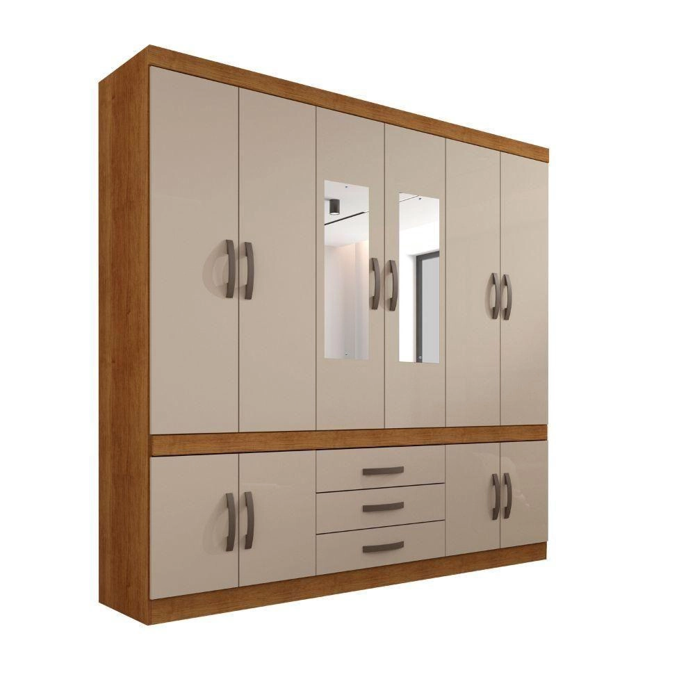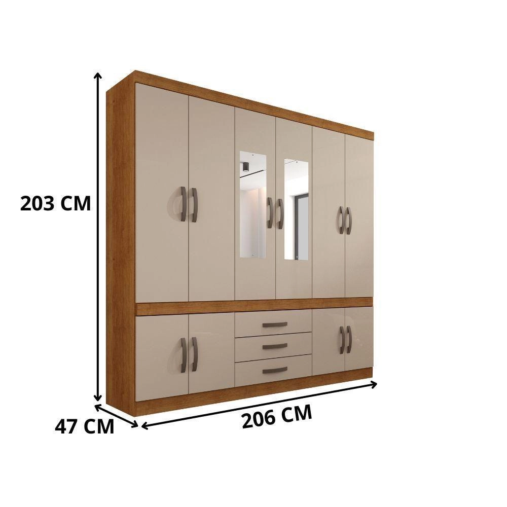 Roupeiro New Parma com Espelho Sallêto CINAMOMO/OFF WHITE